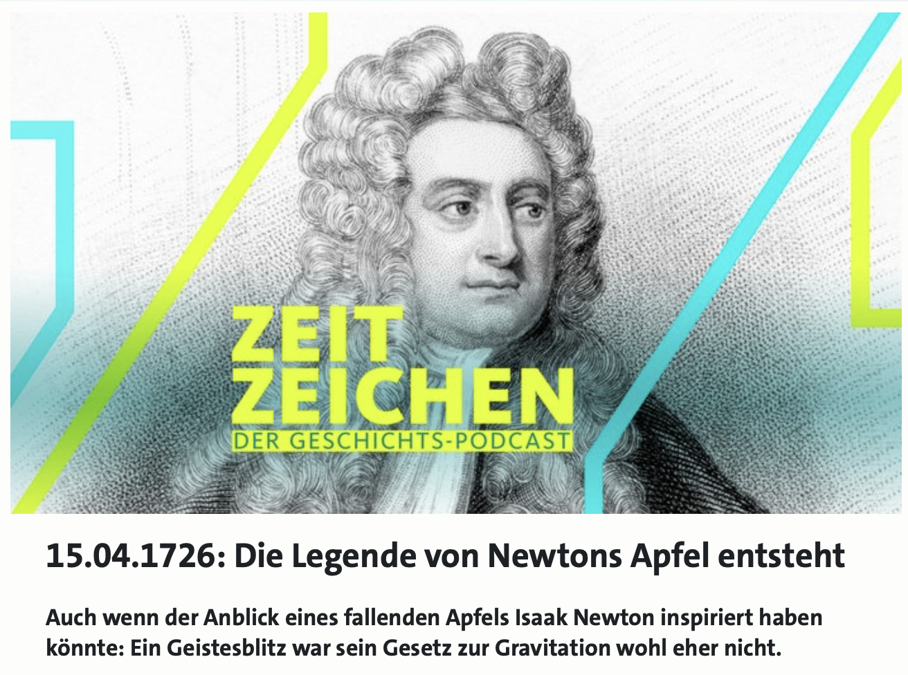 Wenn ich Issac Newton sage, denkst du wahrscheinlich an an einen Apfel und die Entdeckung der Schwerkraft. Der WDR widmet dieser Geschichte in dieser Woche ein Zeitzeichen. Während sich der WDR vor allem mit der Frage beschäftigt, ob die Geschichte stimmt, ist für uns etwas anderes interessant.